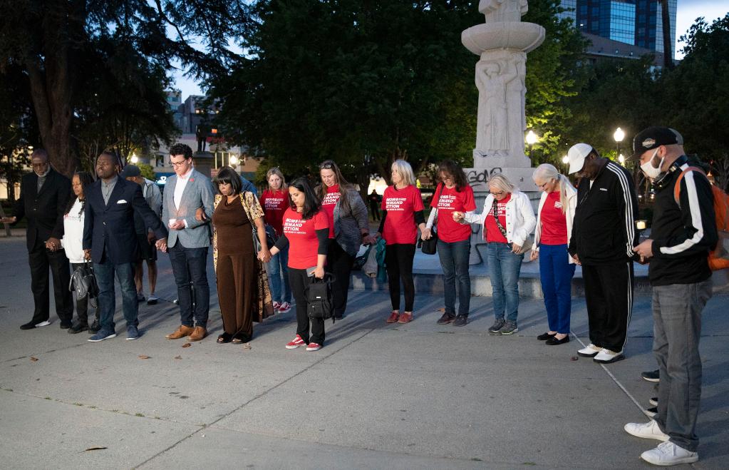 4月3日,人們聚集在美國加利福尼亞州首府薩克拉門托市中心的一處公園里參加守夜活動,悼念當天發(fā)生的槍擊事件遇難者。新華社發(fā)(李建國攝)