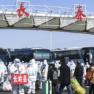 圖為在長春高速公路東出口,返鄉農民有序登車(4月12日攝)。近期,吉林省連續出臺多項舉措,全力解決重點地區農民返鄉備耕問題。新華社發