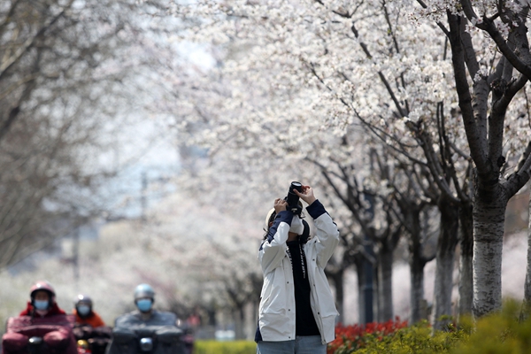 春日暖陽,江蘇省連云港市連云區云和路兩旁的“櫻花長廊”花開正好,引來市民樹下“打卡”。森林氧吧、濱海棧道、沙灘游園、口袋公園,一幕幕家門口的“生態微景觀”不斷刷新著“山海連云”高顏值。