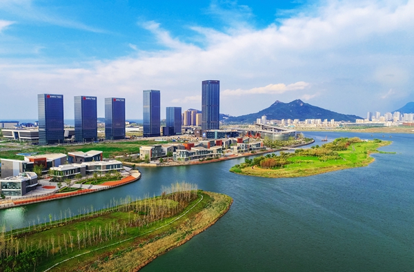 連云新城調蓄湖建設在取得生態效益的同時美化環境,為全域旅游增姿添彩。連云區委宣傳部供圖