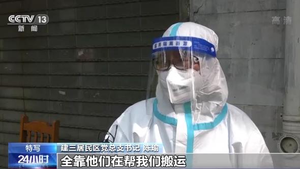 建三居民區黨總支書記 陳瑜:有的人是第二天要做血透,一定要上門做核酸韋組長這個團隊真的給了我很大支撐,尤其是卸物資,東西來了要發菜,全靠他們在幫我們搬運。