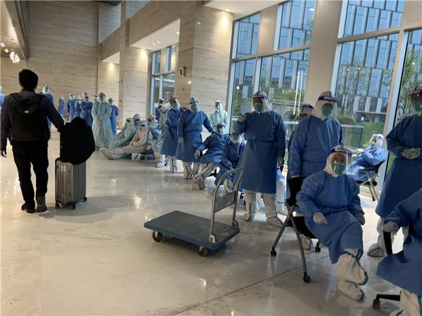 下午1點出頭,我們一家三口開始轉(zhuǎn)運,在中轉(zhuǎn)站短暫停留后,換了輛大巴繼續(xù)轉(zhuǎn)運,路上接了一些陽性病例,兜兜轉(zhuǎn)轉(zhuǎn)直到5點,到了方艙隔離點,周圍春意盎然——打開地圖搜索,發(fā)現(xiàn)距離我家僅9.6公里,聽司機大白介紹,這是浦東疾控剛增設(shè)的。
