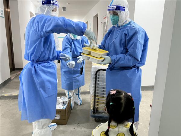 12點半,接到居委會轉(zhuǎn)運通知,我正在吃午飯,同時在接區(qū)疾控流調(diào)電話,火急火燎講完電話,速速扒了兩口蛋炒飯,又吞咽了一大塊昨天剛團到的雞肉,也吩咐孩子多吃點。