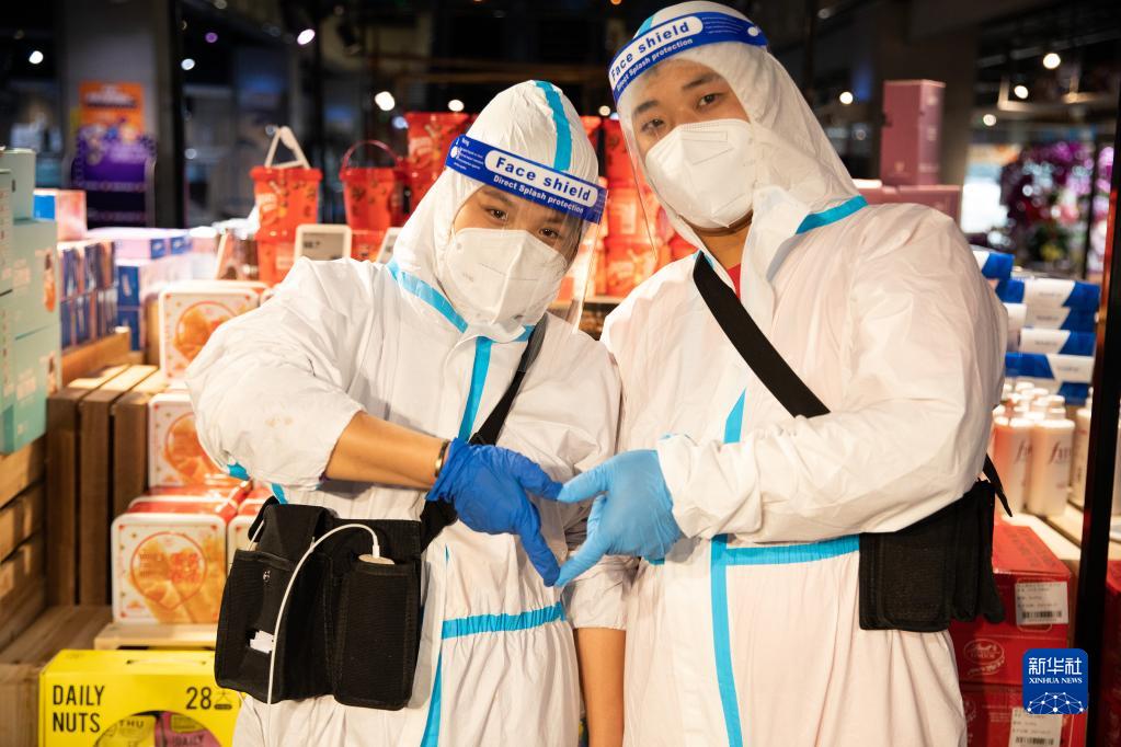 曹冉和徐清秋夫婦是盒馬成都一家門店的員工,兩人都是“Z世代”(一般指出生于1995年至2009年)的年輕人。曹冉負責理貨盤點,徐清秋負責揀貨。4月13日原本是兩人約定拍婚紗照的日子,小兩口一商量,臨時決定取消了婚紗照的拍攝,一起隨團隊前往上海,幫助上海門店加速恢復運轉。他們說:“夫妻一起上陣,反而沒牽掛、負擔,可以做更有意義的事。”他們期待上海疫情早日結束,可以在上海度蜜月。新華社記者 金立旺 攝