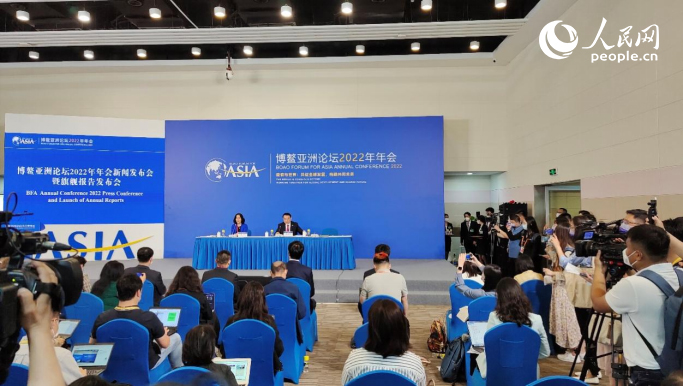 博鰲亞洲論壇2022年年會首場新聞發布會現場。人民網記者 許維娜攝