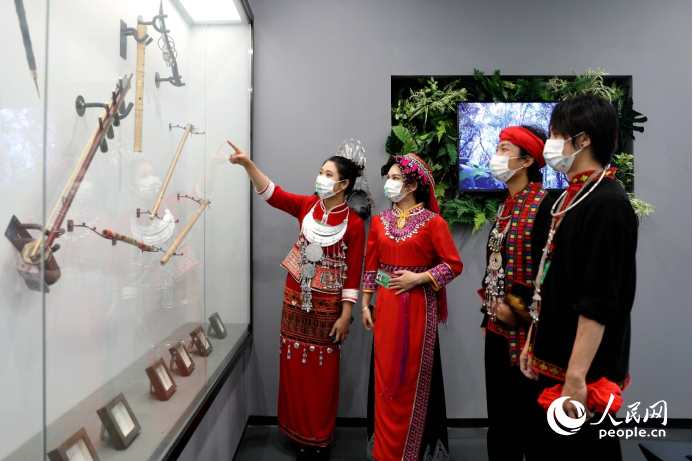 展會現場,展出少數民族樂器。人民網 符武平攝