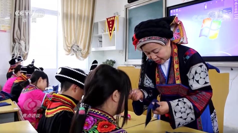 這里是六盤水市六枝特區(qū)落別鄉(xiāng)民族中學(xué),學(xué)校有500多名學(xué)生,少數(shù)民族學(xué)生占了一大半。她叫韋厚珍,是落別布依族彝族鄉(xiāng)非遺傳承人,她正在教學(xué)生們布依族的傳統(tǒng)手工藝。