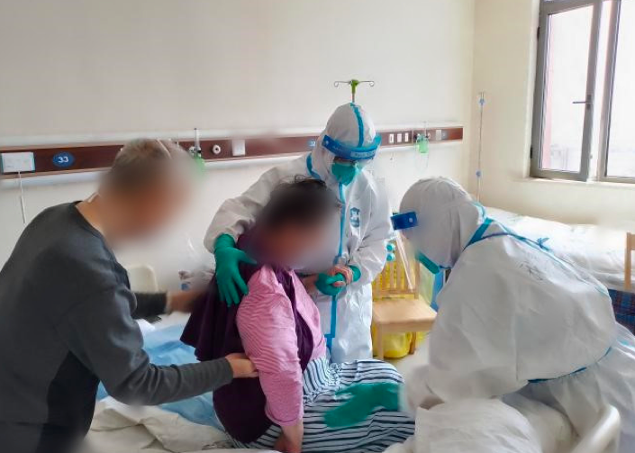 “對于在病區(qū)里生活不能自理的老人而言,我們就是他們的‘保護傘’‘避風(fēng)港’,盡力給予他們力所能及的幫助!敝猩结t(yī)院醫(yī)療隊員、G17病區(qū)護士馮婷說。