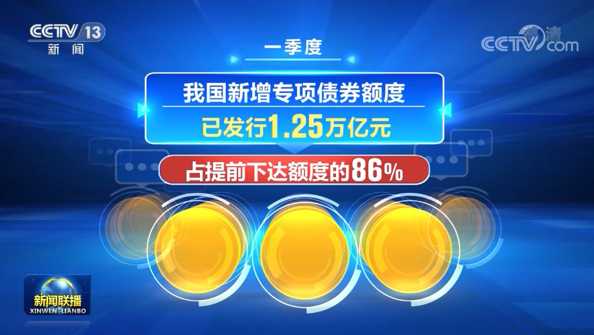 作為穩投資的重要政策工具,一季度,我國新增專項債券額度已發行1.25萬億元,占提前下達額度的86%,政策靠前發力,保證了投資運行總體平穩。