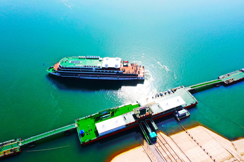 相比于傳統動力游輪,“長江三峽1”號利用清潔水電驅動,每年可替代燃油約530噸,減少有害氣體排放1600多噸。投入運營后,在為游客提供新體驗的同時,服務長江經濟帶綠色高質量發展。