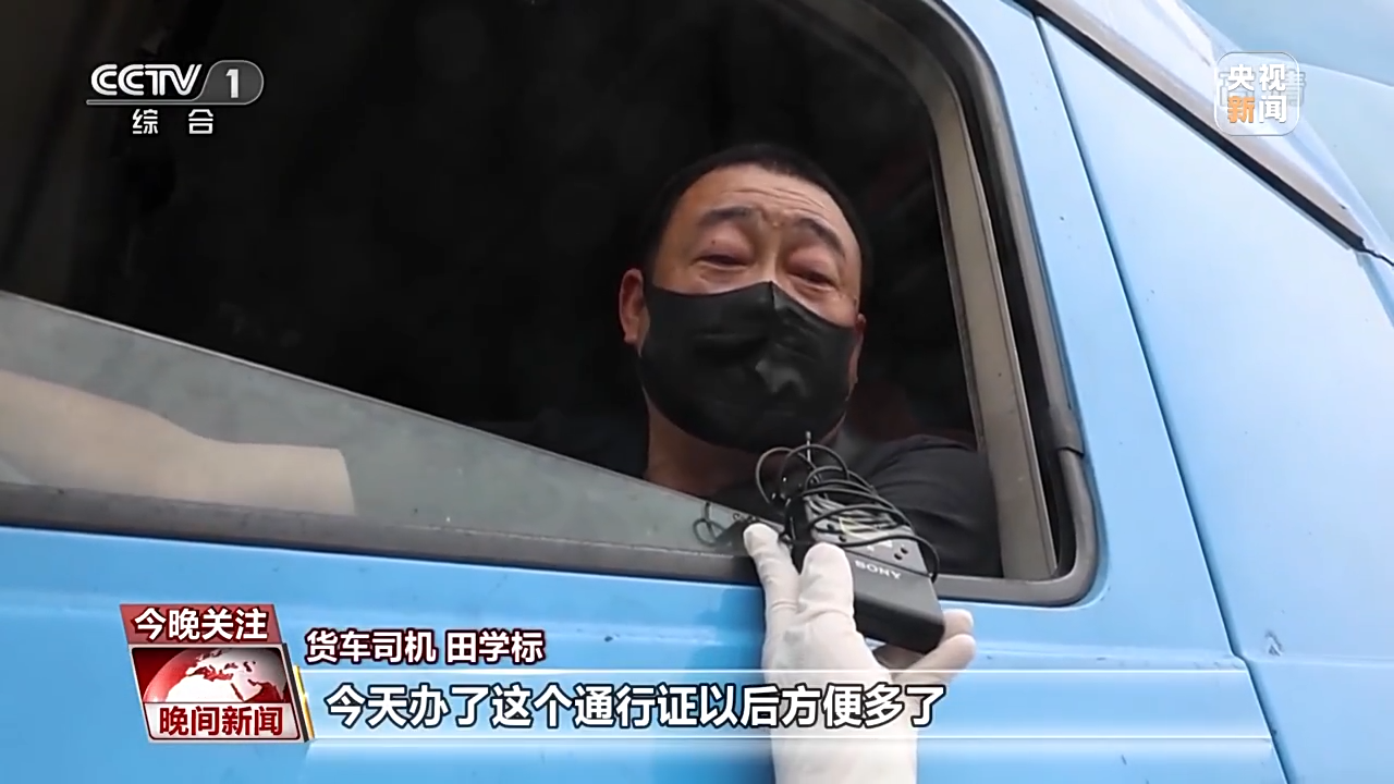 江蘇某醫藥有限公司車隊負責人 劉建勇:因為我們這塊兒主要做的是藥品和防疫物資的配送,所以我們到每個城市的話,都是醫療機構給我們報的計劃,所以我們必須要第一時間運送到那邊去。感覺(辦證)效率還是比較高的,我們從準備到現在的話就兩天時間。