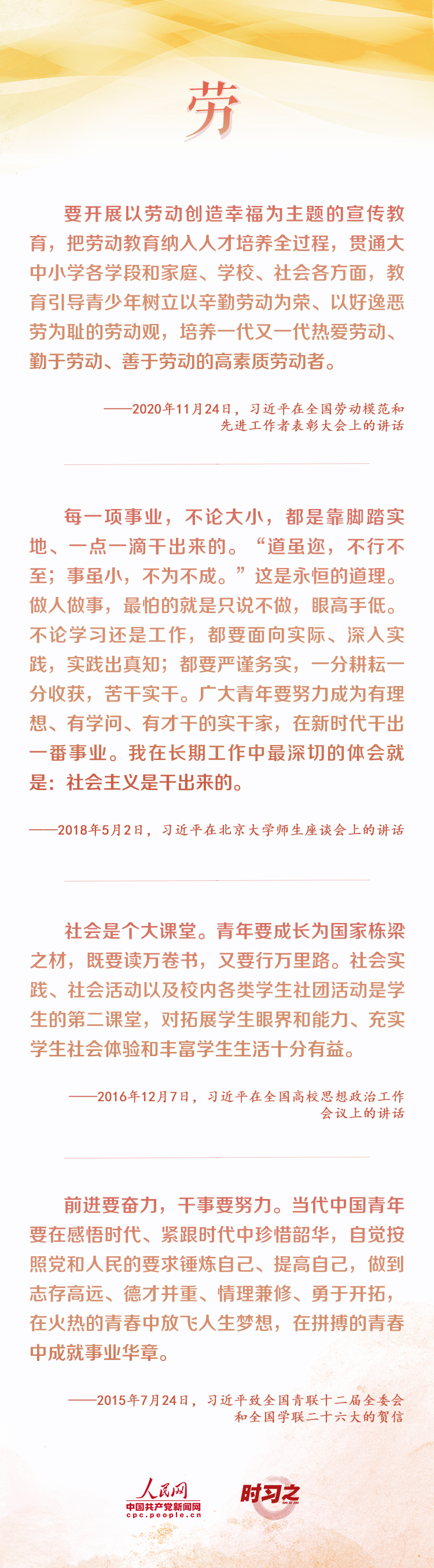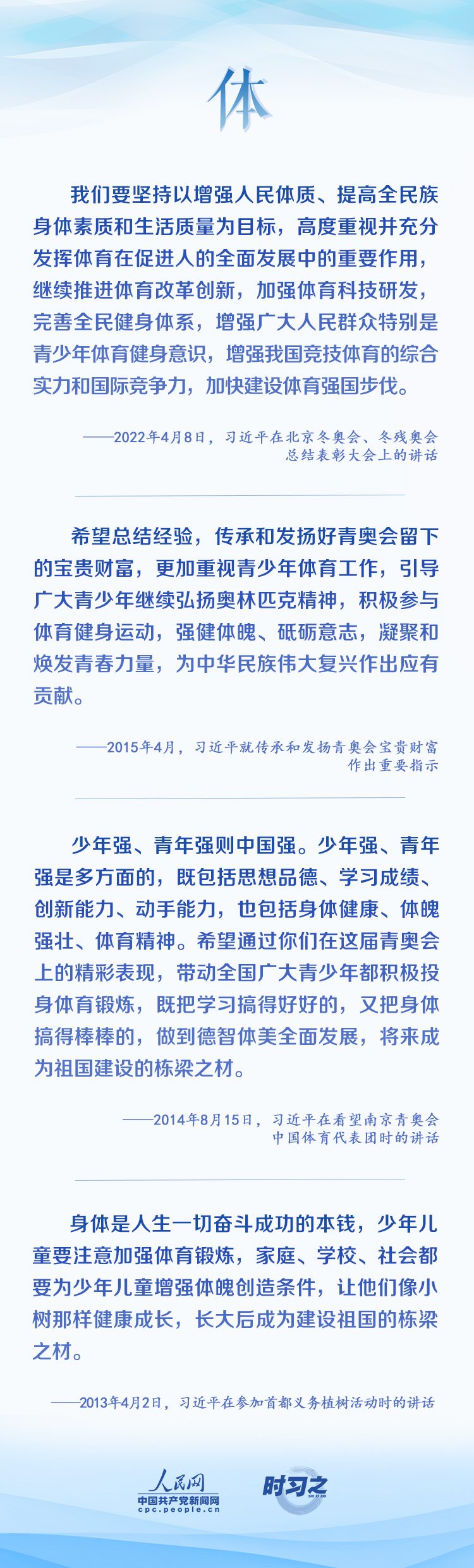 當代中國青年生逢盛世、肩負重任,與新時代同向同行、共同前進。在青春的賽道上奮力奔跑,爭取跑出當代青年的最好成績,習近平激勵青年要德智體美勞全面發展。