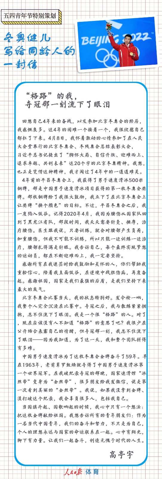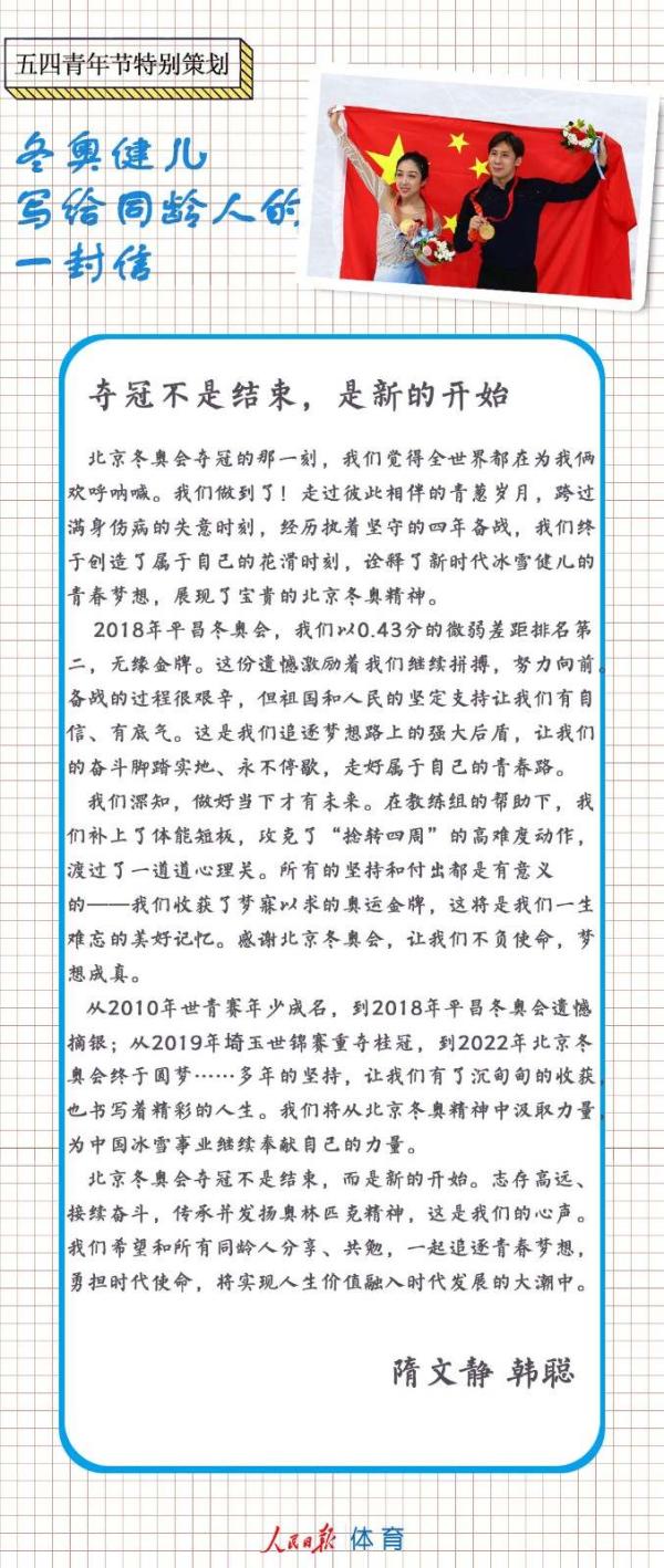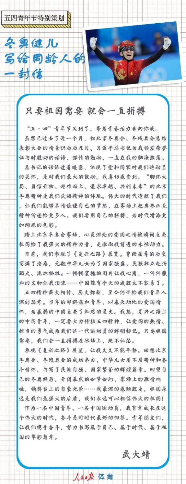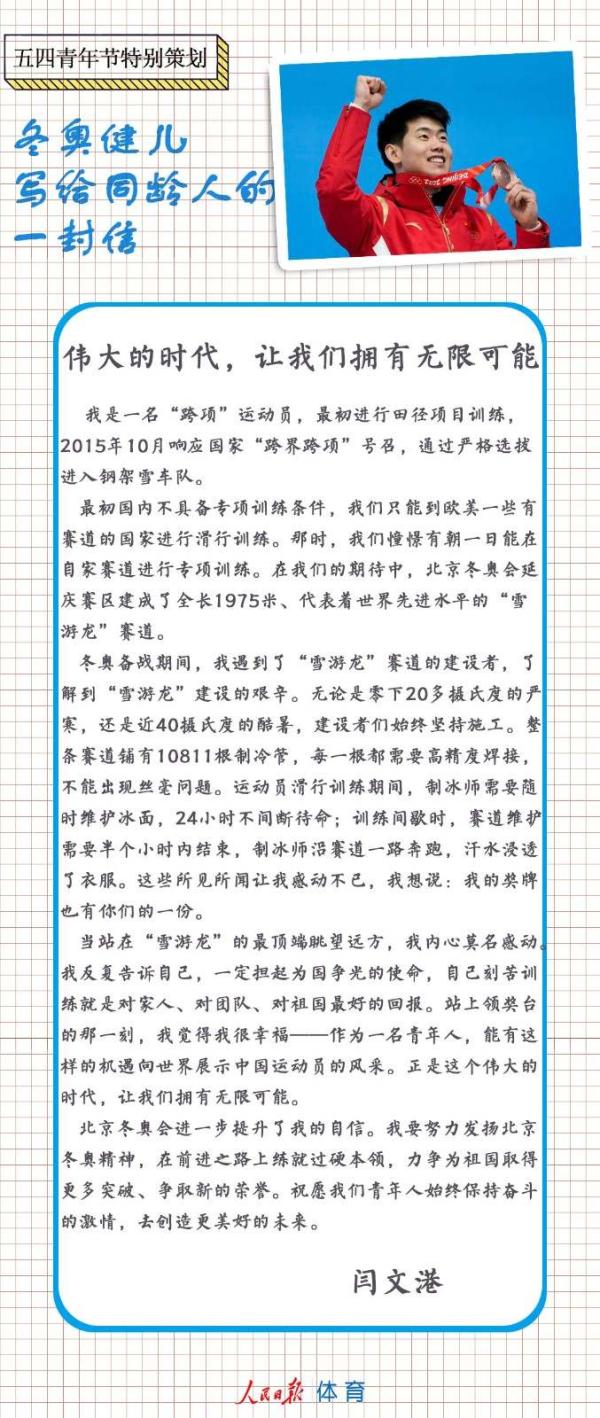 五四青年節,冬奧健兒們給同齡人來信了