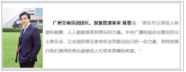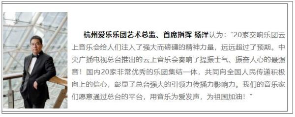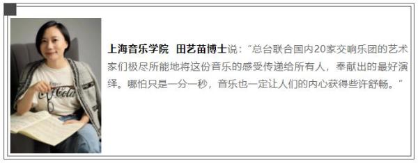 疫情當前,媒體人和音樂人同心同向同行,從策劃到邀約,從錄制到播出,只有短短不到兩周的時間,各樂團的演奏家和節目組齊心協力,克服錄制困難,不斷創新編排形式,最終實現全國20家交響樂團匯聚云端,綻放華章。