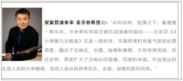 “交響樂之父”海頓為世人留下名言,“藝術的真正意義在于使人幸福,使人得到鼓舞和力量。”參加“五一”云上音樂會演奏的藝術家們表示,加入總臺《音樂傳遞溫暖,堅持就是勝利——“五一”云上音樂會》的演奏,不光是個人和樂團的責任,更是一種榮耀——彰顯音樂之力的榮耀感。