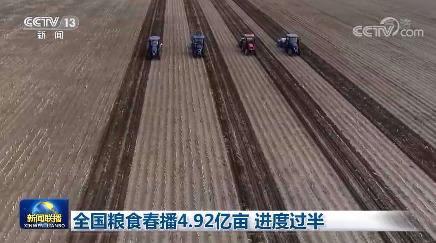 央視網消息(新聞聯播):眼下,糧食主產區正抓住農時,搶墑播種。全國已春播糧食4.92億畝,完成意向面積超過一半,進度快于去年同期。