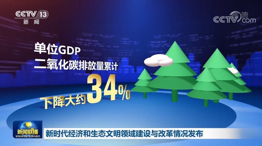 生態環境狀況實現歷史性轉折。霧霾天氣、黑臭水體越來越少,藍天白云、綠水青山越來越多,植樹造林占全球人工造林的四分之一左右,單位GDP二氧化碳排放量累計下降大約34%。