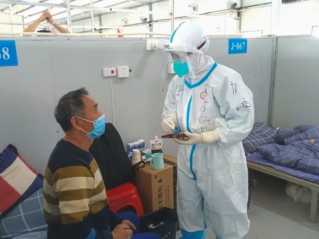 在方艙內,隊員們堅持專業、耐心、細致的服務,盡力營造輕松、愉快、溫暖的氛圍。“有一名感染者好幾天不轉陰,心情十分低落。護士發現后,主動找他聊天,并邀請他發揮特長,幫著方艙繪制海報,很快提振了他的精神狀態。”梅浙川介紹,每家方艙都配有心理醫生,其他醫護人員也會千方百計幫群眾排憂解難。