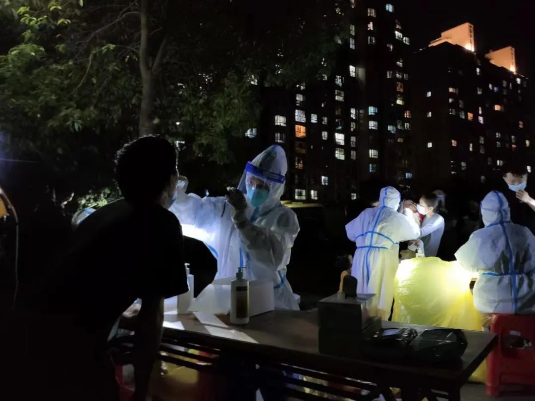 5月6日夜間,采樣隊員王林林在松江區新橋鎮明中苑小區工作。