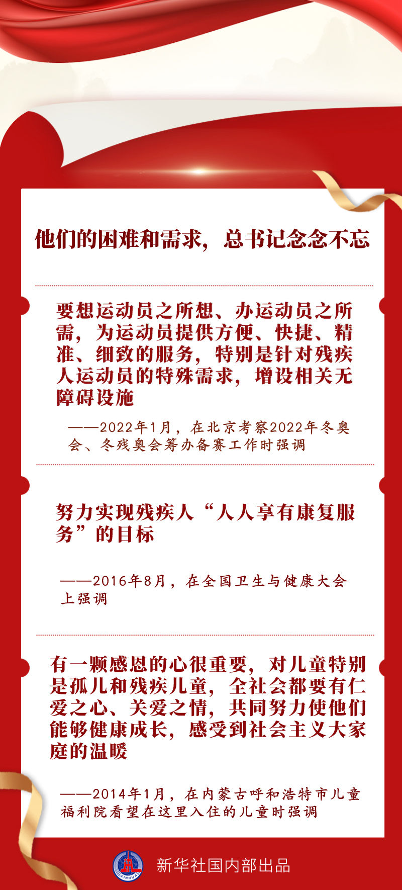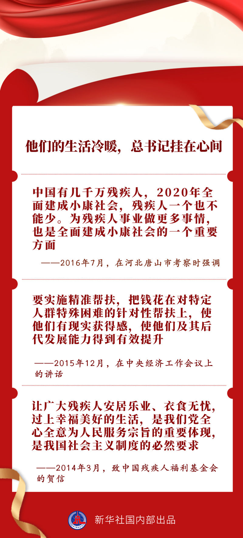 我國有8500萬殘疾人,是特殊困難的群體。黨的十八大以來,習近平總書記對殘疾人“格外關心、格外關注”,圍繞保障殘疾人基本民生、改善殘疾人生活品質、促進殘疾人全面發展等方面多次發表重要講話、作出重要指示。5月15日,在第三十二次全國助殘日到來之際,讓我們一同感悟總書記心中這份“格外”的愛。