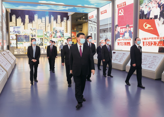 2021年6月18日,習(xí)近平、李克強(qiáng)、栗戰(zhàn)書、汪洋、王滬寧、趙樂際、韓正、王岐山等參觀“‘不忘初心、牢記使命’中國共產(chǎn)黨歷史展覽”。