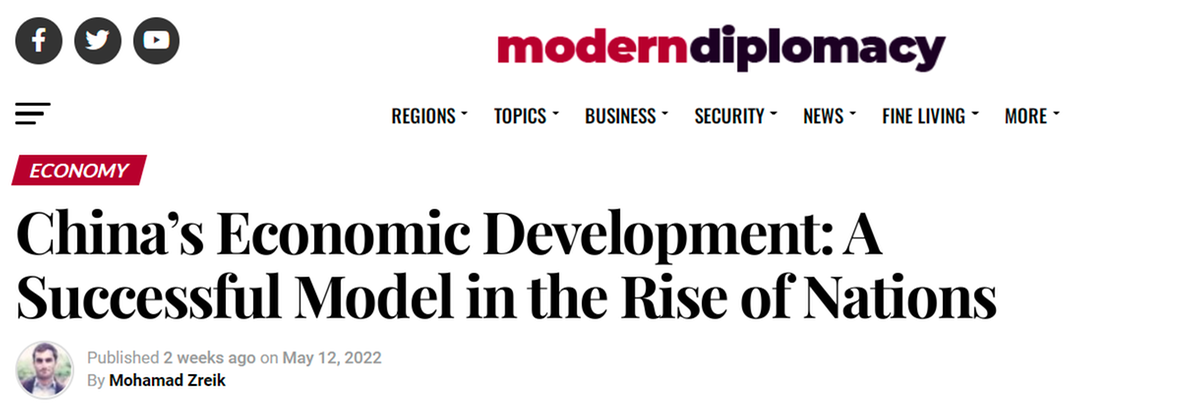 中國日報網5月23日電 歐洲“現代外交”網站近日刊發文章稱,中國在短時間內成長為全球第二大經濟體,其發展模式已經成為世界上最具獨創性的典范,可以成為各國實現繁榮發展的指導經驗。