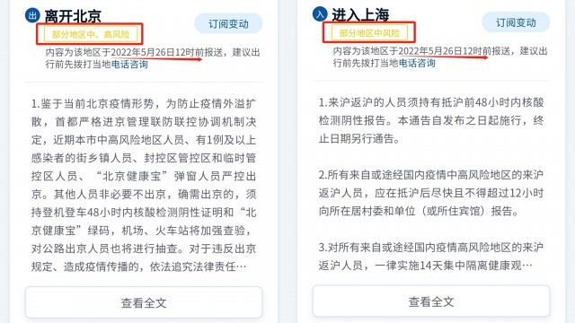 風(fēng)險等級、核酸要求等信息