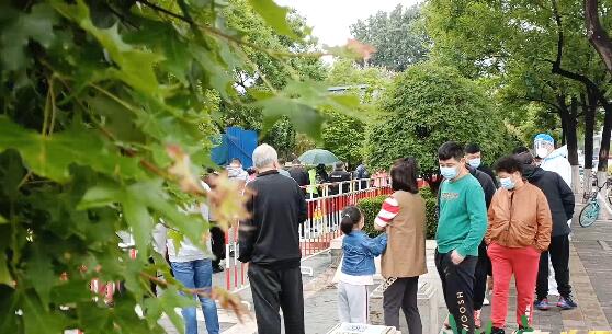 從五一假期開始,張新華已經在社區從事志愿服務二十多天。她的主要工作是配合醫務人員進行核酸檢測。烈日炎炎下,汗水濕透了她的衣服和防護服,面罩上也覆蓋了水汽。