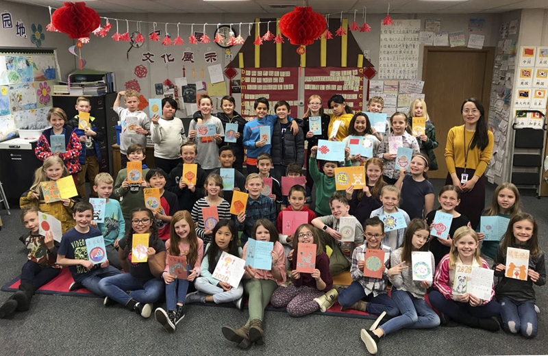 ↑2020年1月21日,美國猶他州卡斯卡德小學師生展示為習主席制作的新年賀卡。