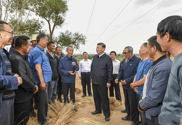 2019年8月21日上午,習近平總書記在甘肅武威市古浪縣八步沙林場考察。(新華社發)