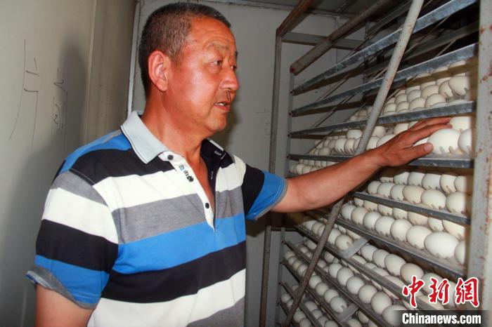 中新網烏魯木齊6月7日電 (史玉江 謝國慶 王菊芳)“雖然現在灰鵝因疫情在當地銷售受到影響,但因為之前建立了電商渠道,鵝蛋的銷售市場非常好。”日前,在新疆生產建設兵團第十師一八二團一養殖場內的孵化室,52歲的強松江對記者表示。