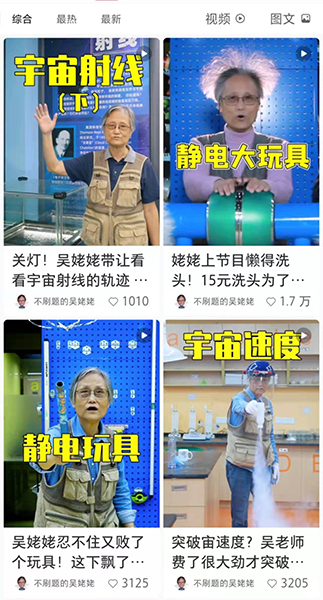 視頻中的老人叫吳於人,網友稱她“吳姥姥”,72歲,坐擁百萬粉絲。“吳姥姥”退休前是同濟大學物理學教授,退休后成了愛“玩”物理的老小孩,在她手里,雞蛋、花生、硬幣等都能成為實驗用品。