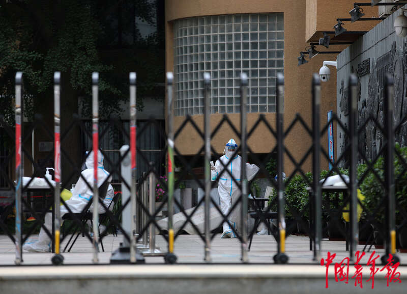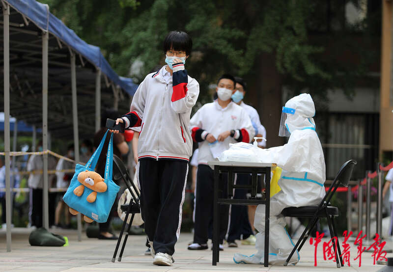 6月8日,北京市朝陽區陳經綸中學高考考點,一位考生做完做核酸檢測后準備離開。中青報 中青網記者 陳劍/攝