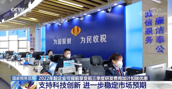 央視網(wǎng)消息:國(guó)家稅務(wù)總局6月9日發(fā)布消息,《關(guān)于企業(yè)預(yù)繳申報(bào)享受研發(fā)費(fèi)用加計(jì)扣除優(yōu)惠政策有關(guān)事項(xiàng)的公告》已印發(fā),明確從2022年起,企業(yè)可以在每年10月申報(bào)期申報(bào)享受前三季度研發(fā)費(fèi)用加計(jì)扣除政策優(yōu)惠,把2021年10月提前享受當(dāng)年的研發(fā)費(fèi)用加計(jì)扣除政策舉措轉(zhuǎn)化為制度性規(guī)定,進(jìn)一步穩(wěn)定市場(chǎng)預(yù)期,支持科技創(chuàng)新。