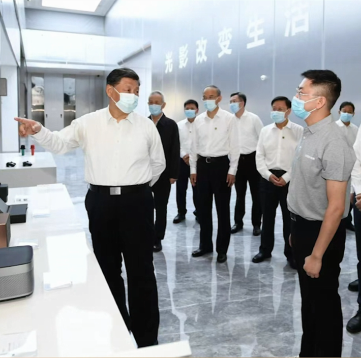 2022年6月8日,習近平總書記在四川省宜賓市考察了極米光電有限公司。他走進公司展廳和生產車間,了解企業加強自主創新、產品研發銷售、帶動就業和當地支持民營經濟發展、出臺紓困幫扶政策等情況。