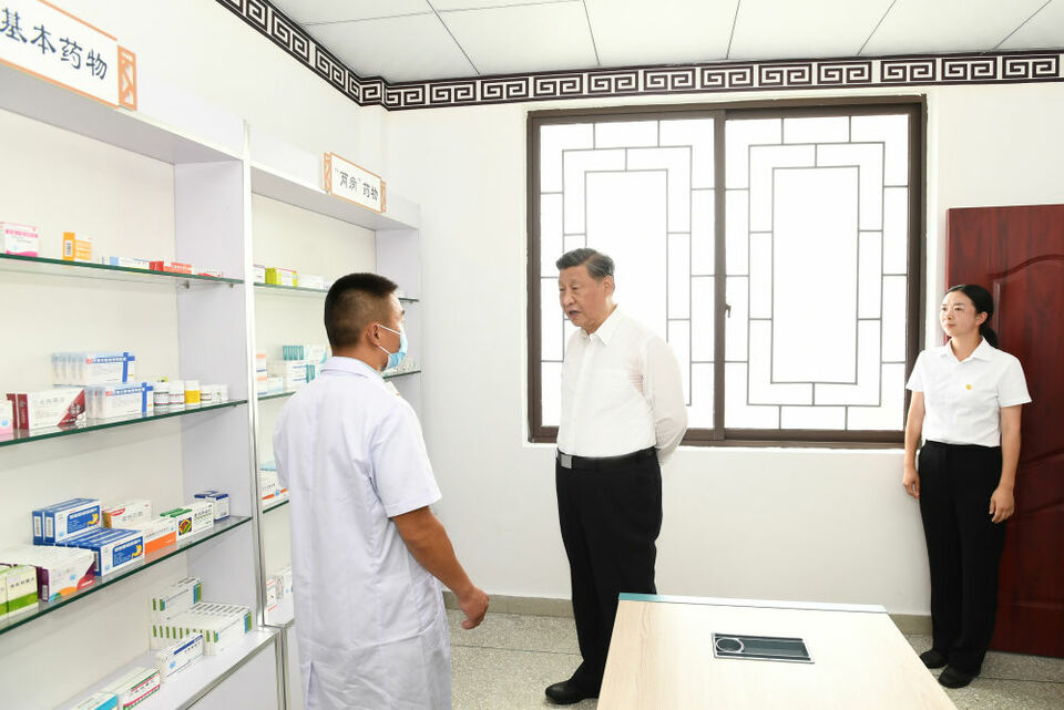 ↑2022年6月8日,習近平步行察看四川省眉山市東坡區太和鎮永豐村村容村貌,考察村衛生站,詳細了解改善人居環境、做好農村疫情防控等情況。