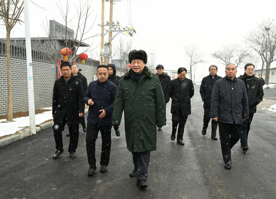 ↑2022年1月26日下午,習近平冒雪在山西省臨汾市霍州市師莊鄉馮南垣村考察。