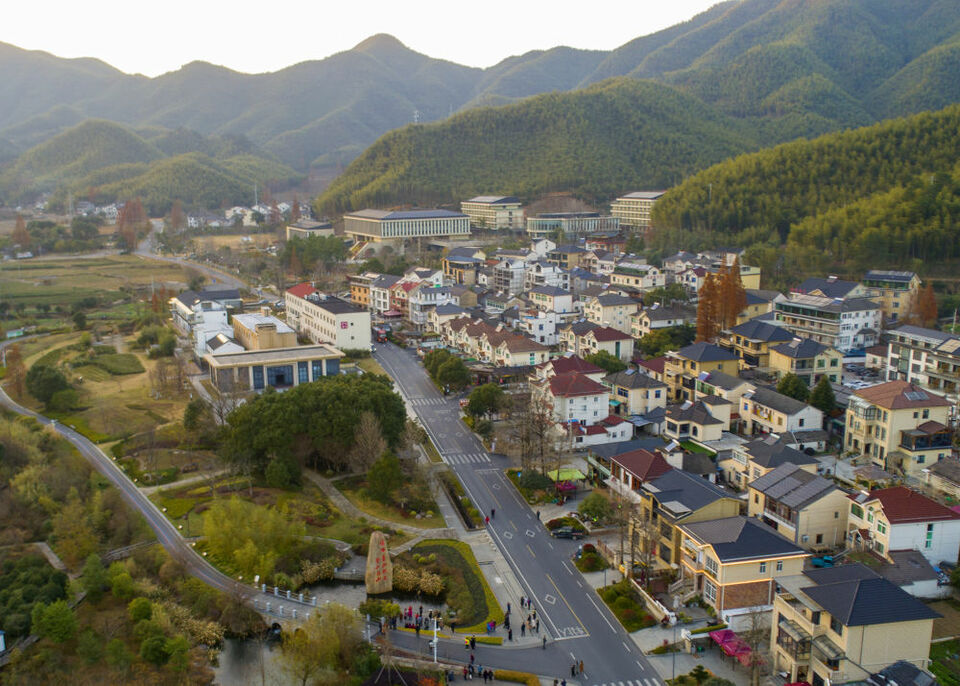 ↑2021年12月3日拍攝的浙江省安吉縣余村(無人機照片)。