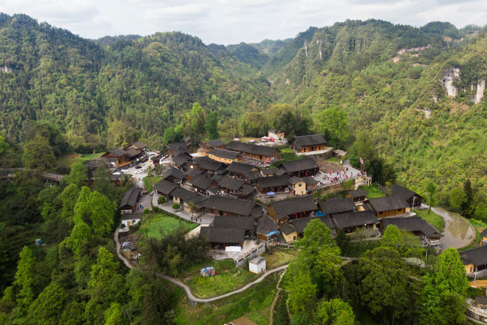 ↑2021年4月15日拍攝的湖南湘西十八洞村梨子寨(無人機照片)。