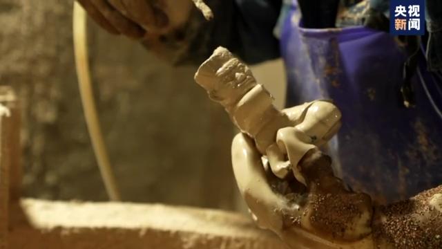 綿密的細沙,緊緊包裹住制好的蠟模。在上千度高溫的炙烤下,石蠟完成它偉大的使命。