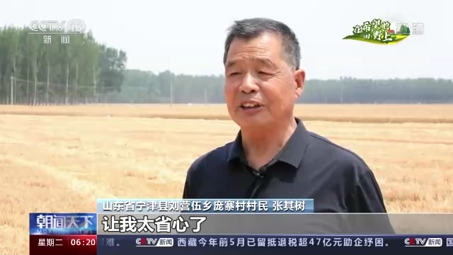 山東省寧津縣劉營伍鄉龐寨村村民 張其樹:鄉里提前和我聯系了,讓孩子們安心在外務工,收麥子種玉米他們全包了,讓我太省心了。