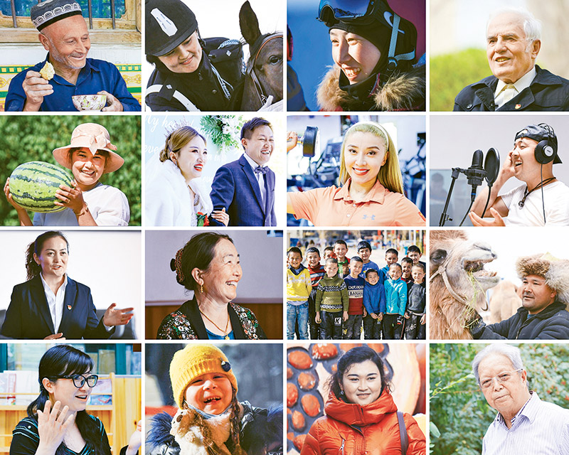 黨的十八大以來,在以習近平同志為核心的黨中央堅強領導下,新疆人權事業不斷得到新的發展和進步。圖為2021年拍攝的新疆各族群眾的笑臉合集(拼版照片)。 新華社發