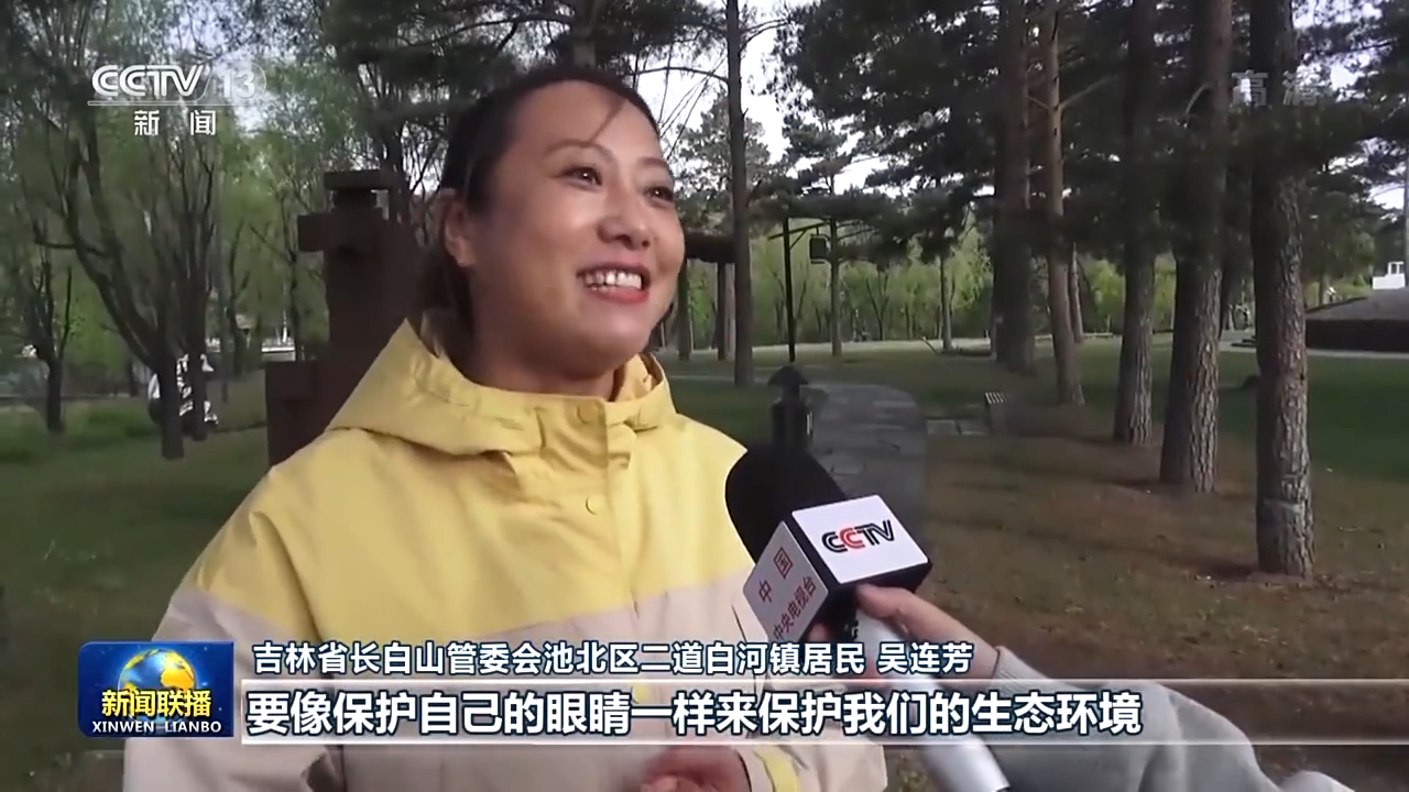 吉林省長白山管委會池北區二道白河鎮居民 吳連芳:要像保護自己的眼睛一樣來保護我們的生態環境,也希望世界各地的所有的游客,都能到我們長白山來旅游、來做客,來感受一下我們長白山天然大“氧吧”的這種氛圍,讓長白山成為所有人我心向往之的旅游勝地。