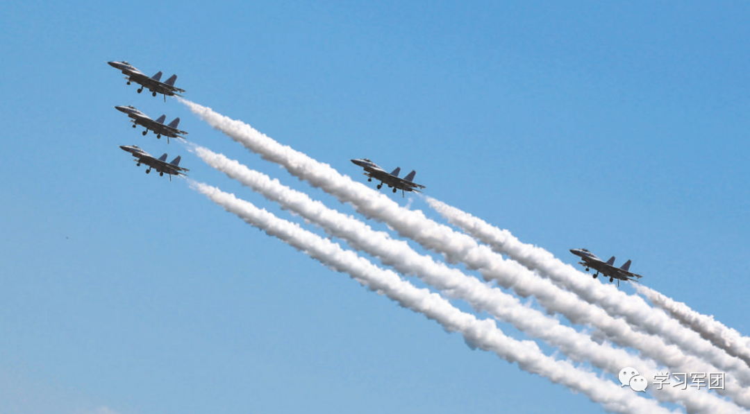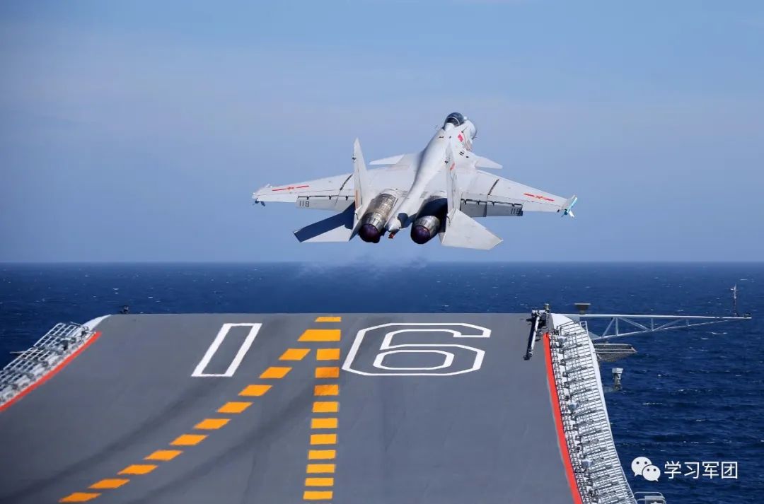 又一個飛行日,又一批雄鷹礪翅。從指揮塔臺眺望,一架架殲-15戰機正沖出滑躍甲板,奮飛在強軍興軍的勝利航道上……