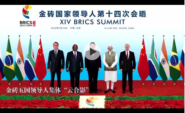 6月23日,國家主席習(xí)近平在北京主持金磚國家領(lǐng)導(dǎo)人第十四次會(huì)晤。會(huì)晤以視頻方式舉行,主題為“構(gòu)建高質(zhì)量伙伴關(guān)系,共創(chuàng)全球發(fā)展新時(shí)代”。南非總統(tǒng)拉馬福薩、巴西總統(tǒng)博索納羅、俄羅斯總統(tǒng)普京、印度總理莫迪出席。