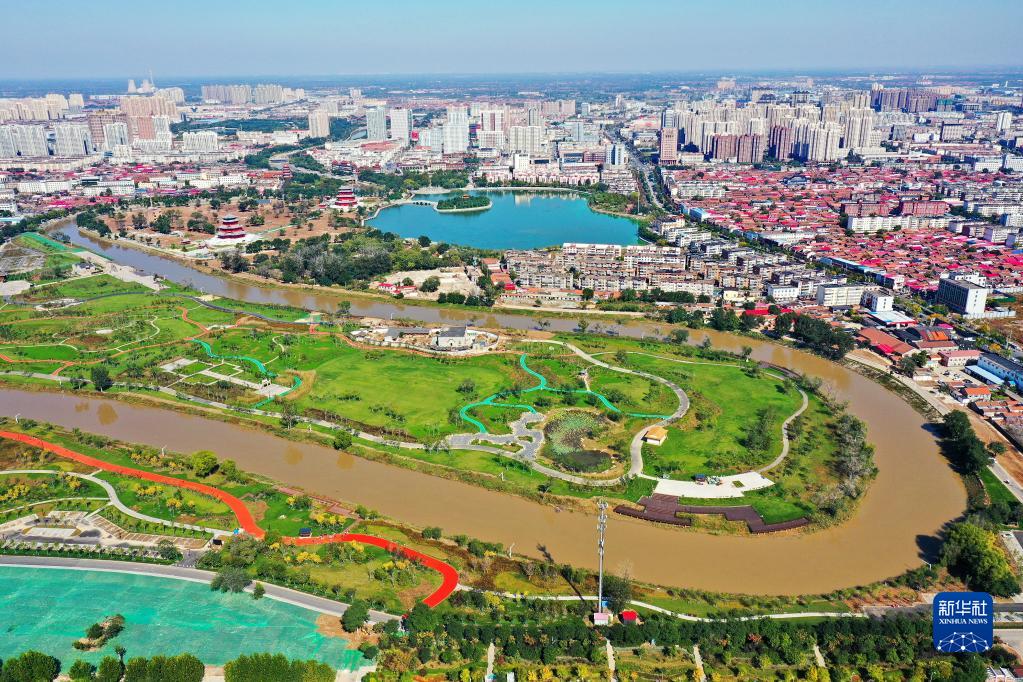 這是2021年10月12日拍攝的河北省滄州市百獅園生態(tài)修復區(qū)(無人機照片)。新華社記者 牟宇 攝