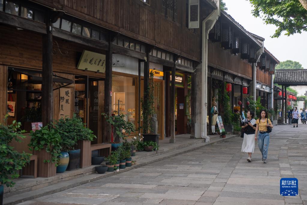 5月27日,游客在浙江杭州橋西直街歷史文化街區(qū)游玩。新華社記者 江漢 攝