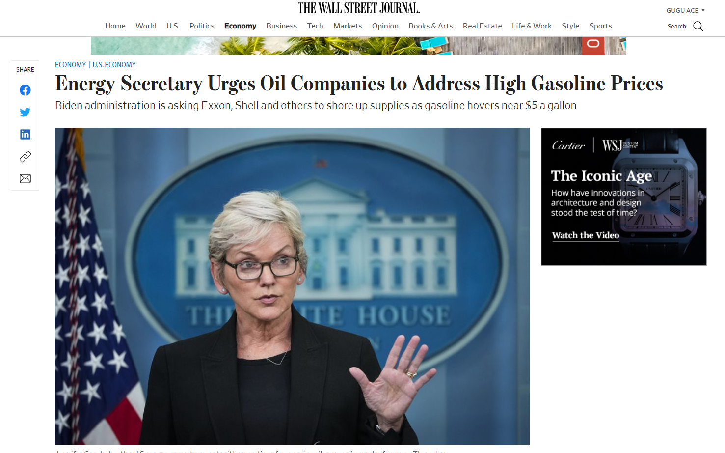 包括埃克森美孚、雪佛龍、殼牌、馬拉松和菲利普斯66等大型石油企業(yè)高管在內(nèi)的行業(yè)人士,23日與美國(guó)能源部長(zhǎng)格蘭霍姆就如何降低汽油價(jià)格召開會(huì)議,希望能夠緩解美國(guó)消費(fèi)者的通脹壓力,但會(huì)議未能提出具體的長(zhǎng)期解決方案,只是承諾將繼續(xù)討論這一問題。