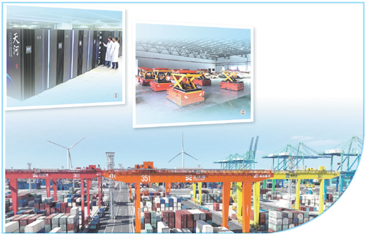 圖③:天津港北疆港區智能化集裝箱碼頭。