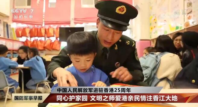 央視網(wǎng)消息:1997年,香港回到祖國母親的懷抱。25年風雨征程,25年忠誠使命,這支伴隨著香港回歸應運而生的年輕部隊,依法履行香港防務,優(yōu)良作風始終如一,贏得了香港社會各界的廣泛贊譽。一代代駐香港部隊官兵以駐地為故鄉(xiāng),真誠愛港、赤誠為民,架起一座親民愛民的“連心橋”。